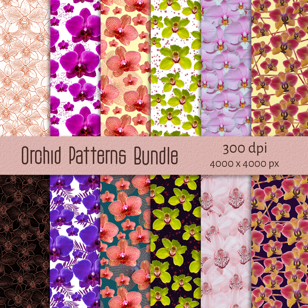 Twelve colorful artistic orchid patterns for your creative floral projects.